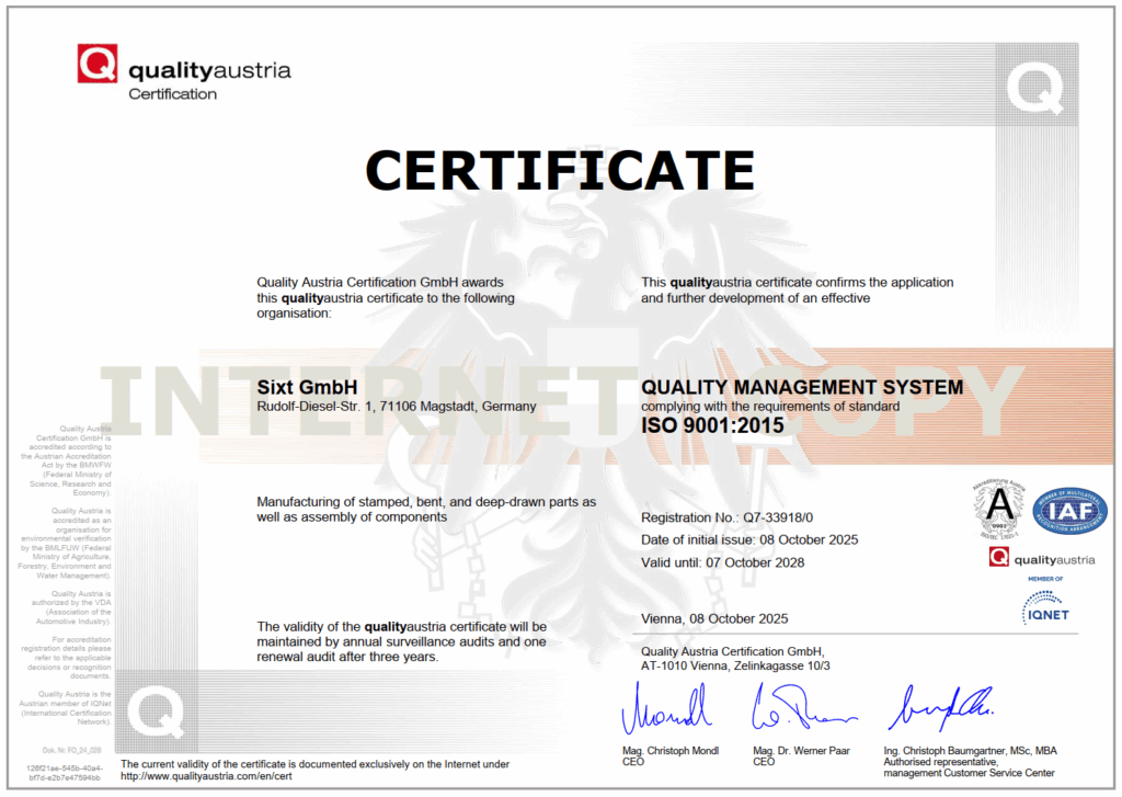 (from 1998: ISO 9001, from 2002: VDA6.1, from 2010: ISO/TS16949, from 2020: IATF 16949:2016) - Modern CAQ system